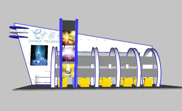 電信展廳全套草圖大師SU模型,含3dmax模型CAD圖渲染圖PSD效果圖,非常完整的一套展廳方案